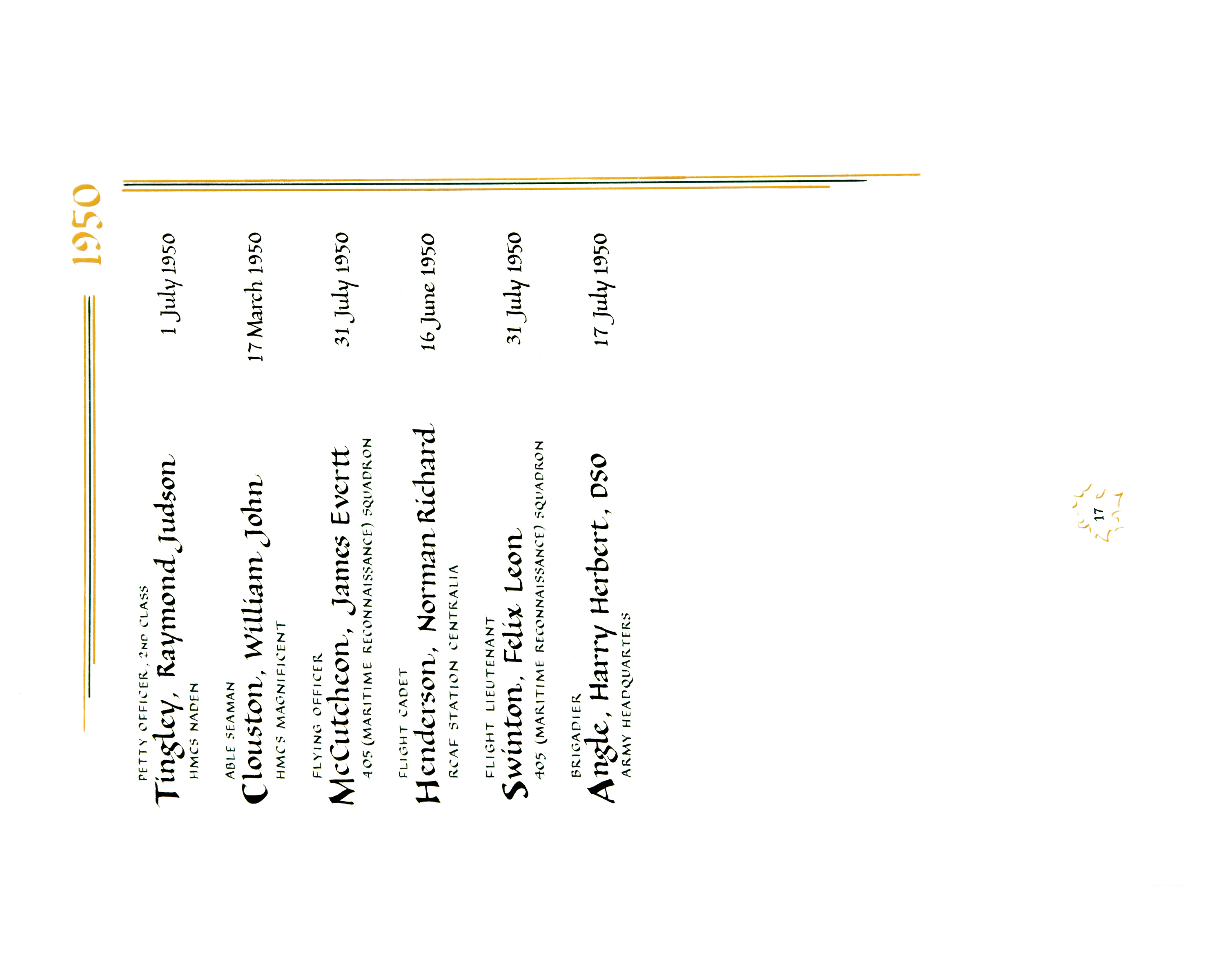 CLOUSTON, William John, AB, 6271, RCN, died 17 Mar 1950, HMCS MAGNIFICENT - Son of William and Cecily Clouston of Miami, Florida, United States.