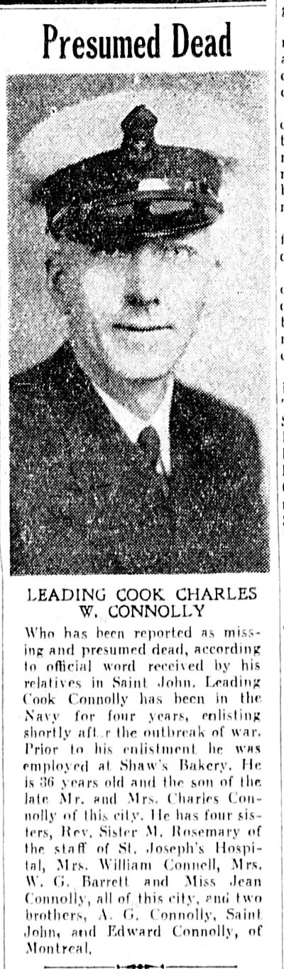 (CWC002) Leading Cook Charles Connolly Killed in Action  //  The Saint John Times Globe  //  Courtesy of Operation Picture Me