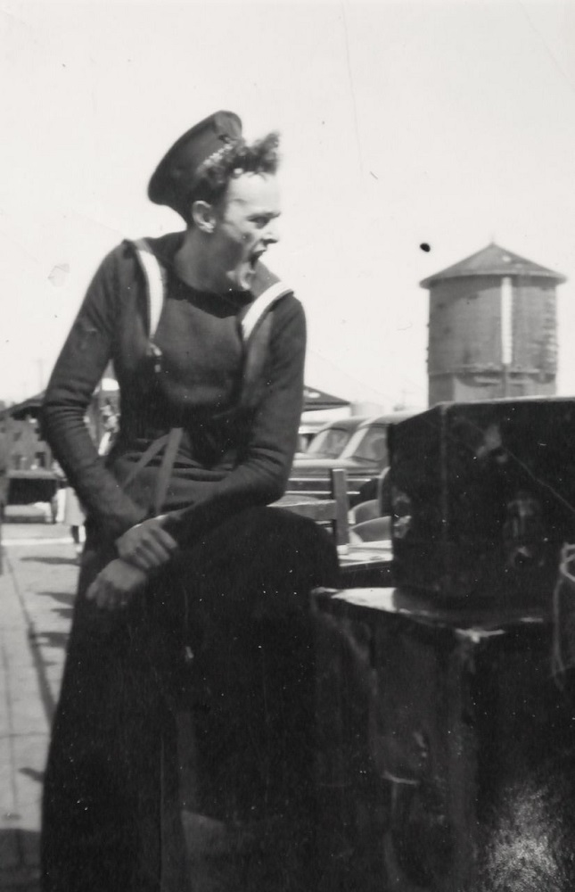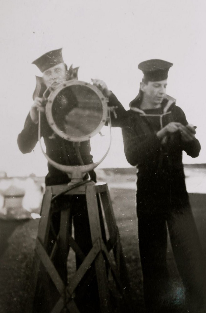 (1) Unidentified sailor  (2) Unidentified minesweeper  (3) Unidentified sailors on signal light ashore (possibly in training at St Hyacinthe)  (4) Group of friends - Les front row on the left  (5) Les  (6) "Big Time Boys Writing Home"  (7) Les