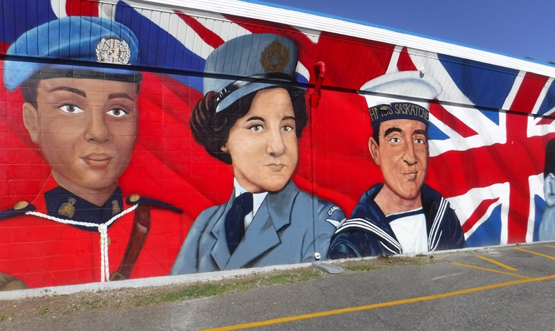 Mural on the wall of the Royal Canadian Legion #256 in Nanaimo B.C. The sailor in the mural is LS Raymond Good Courtesy of Gary Robertston