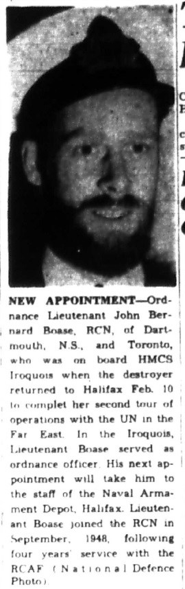 Article on Lt Boase being appointed to the Naval Armament Depot, Halifax.