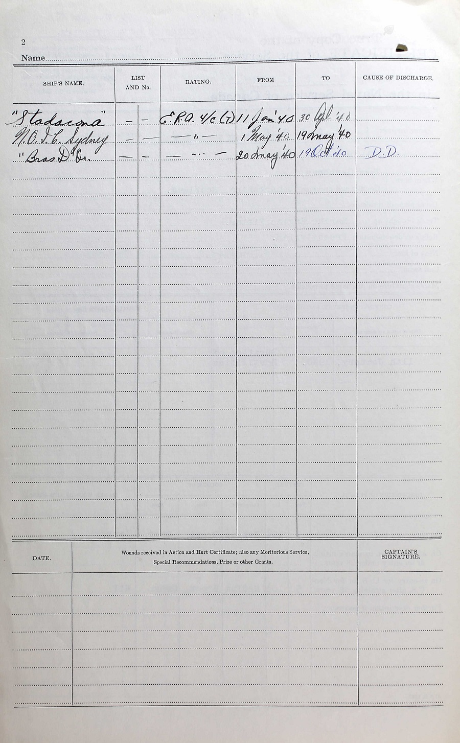 Ships served in: HMCS BRAS D'OR - Drafted to BRAS D'OR 25 May 1940 as an ERA 4c