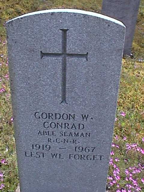 CONRAD, Gordon William - Able Seaman Gordon William Conrad, 47, died suddenly Saturday in hospital in Puerto Rico. He was a crew member of CNAV Blue Throat. Born in Conquerall Banks, he was the son of Mrs. Angus Conrad and the late Mr. Conrad. He spent most of his life at sea, serving in the Navy during the Second World War. he took part in the invasion of Sicily and Italy, and the final invasion of France. On two occasions, ships on which he was serving were torpedoed. Mr. Conrad is survived by his wife, the former Elnora Weir of Digby; three young daughters Judy, Marilyn and Susan; his mother; two brothers, Foster, Worcester, Mass.; Terry, Chicago; and a sister, Kathleen (Mrs. E. Oxner), Dartmouth. the body will be brought to Wamback's Memorial Chapel, Bridgewater. Interment will be in Maple Leaf cemetery, Conquerall Banks. Funeral arrangements have not yet been completed. (Halifax Chronicle-Herald, Monday, 16 Jan 1967 / Researched by George Newbury)