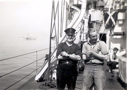 Gaston Young (right) with Johnny off Spithead on unknown ship