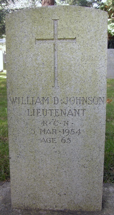 Headstone for Lt William Johnson in the Veterans Cemetery, Victoria, BC