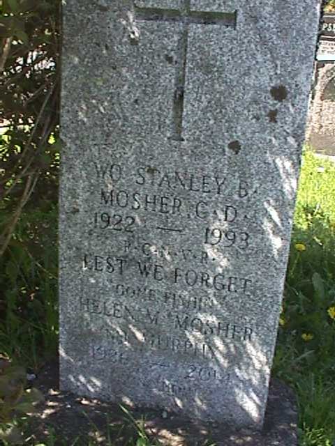 (SM01) PO Stanley Mosher (SM02) PO Stanley Mosher receiving the CD (SM03) PO Stanely Mosther (SM04) Headstone of PO1 Stanley Mosher, Maplewood Cemetery, Windsor, NS. Photographed by / Courtesy of George Newbury