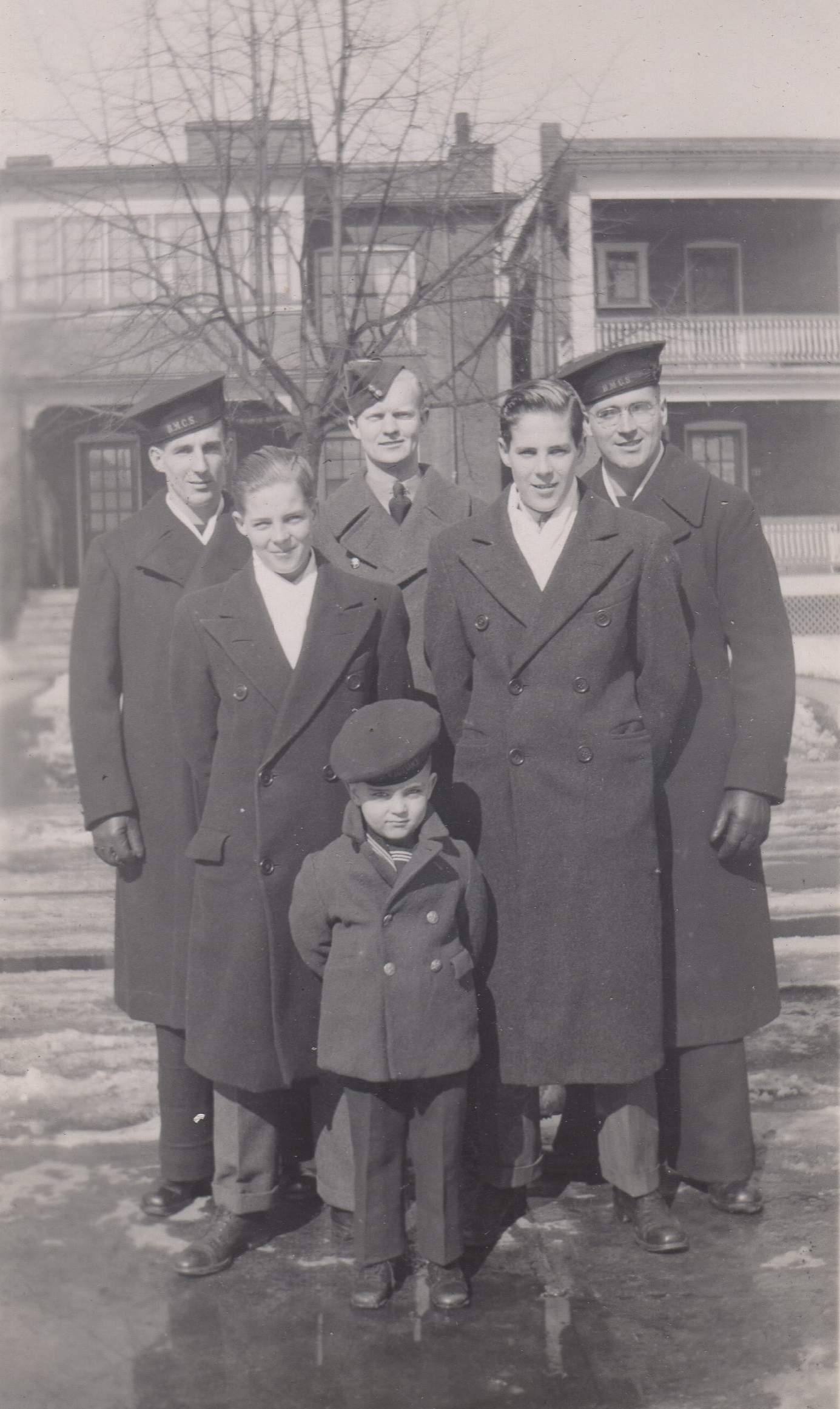 (9-10) Dalton (right) and his brother Theodore who was a stoker (11) The Kaye brothers - Theodore, Dalton, Kelvin, Mervin & Ronald (young lad in front) - unknown Air Force type, centre rear. (12) Dalton's youngest brother - Ronald Kaye (13) Dalton and his mother Beatrice Kaye (14) Dalton (right) and unidentified friend (15) Unidentified person holding a life vest (16) Unidentified sailors ashore