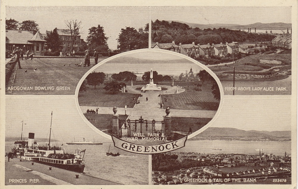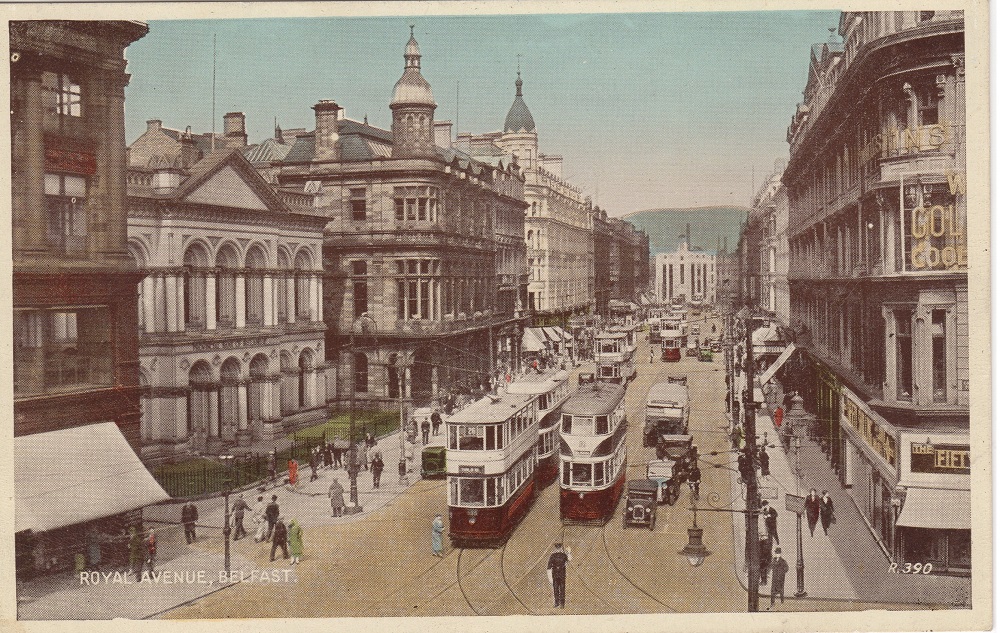 Postcards that Dalton collected during his travels (35) Hazelwood, Belfast, Northern Ireland (36) Royal Avenue, Belfast, Northern Ireland (37) Gourock & Argyllshire Hill from Greenock, Scotland (38) The Steps, Bellevue, Belfast, Northern Ireland (39) City hall from east, Belfast, Northern Ireland (40) Donegall Square, Belfast, Northern Ireland (41) Greenock, Scotland (42) Waterfront, Boston, Massachusetts