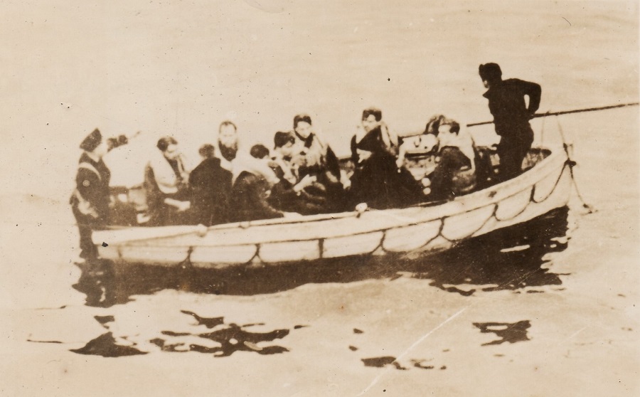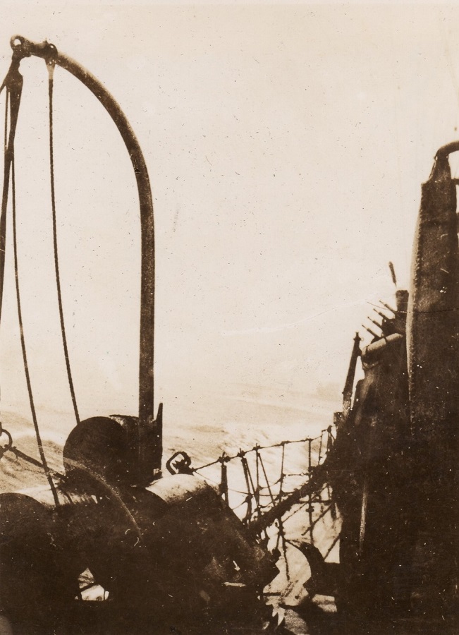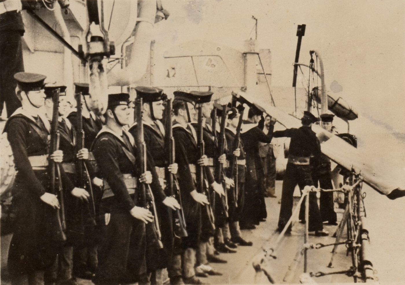 (43-45) U-210 on the surface attempting to escape HMCS Assiniboine (46) Damage control team fighting a fire on the boat deck of HMCS Assiniboine cause by gunfire from U-210 (47) U-210 just before being rammed by HMCS Assiniboine (48) The battle won, boat crew of HMCS Assiniboine pick up survivors from U-210 (49) Lt Stubbs, CO, on the bridge of HMCS Assiniboine - battle damage can be seen on the face of Assiniboine's bridge (50) The cost of victory - Ordinary Seaman Kenneth Watson, youngest rating on board, killed in action in the battle against U-210 on 06 Aug 1942, is buried at sea. He was hit twice while carrying ammunition to "A" gun. These photos are also found on the page for HMCS Assiniboine.