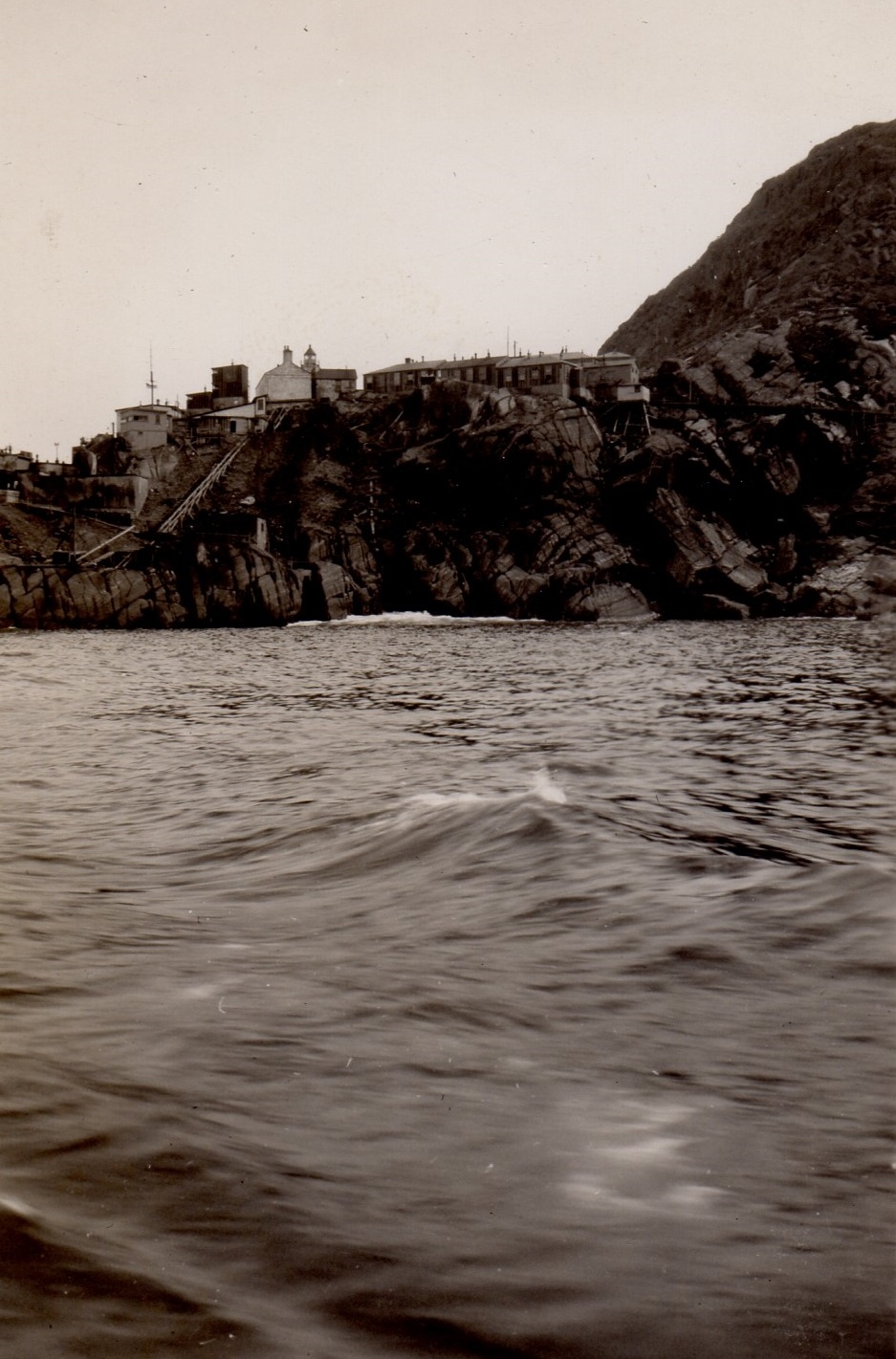 St. John's, Newfoundland (31) Transiting the Narrows, St John's, Nfld - looking at the south side of the Narrows (32) The Narrows, St John's, Nfld with anti-submarine boom net protecting the harbour - looking at the north side of the Narrows. Cabot Tower visible atop Signal Hill (33-34) View of the waterfront of St. John's, Nfld from a ship anchored in harbour