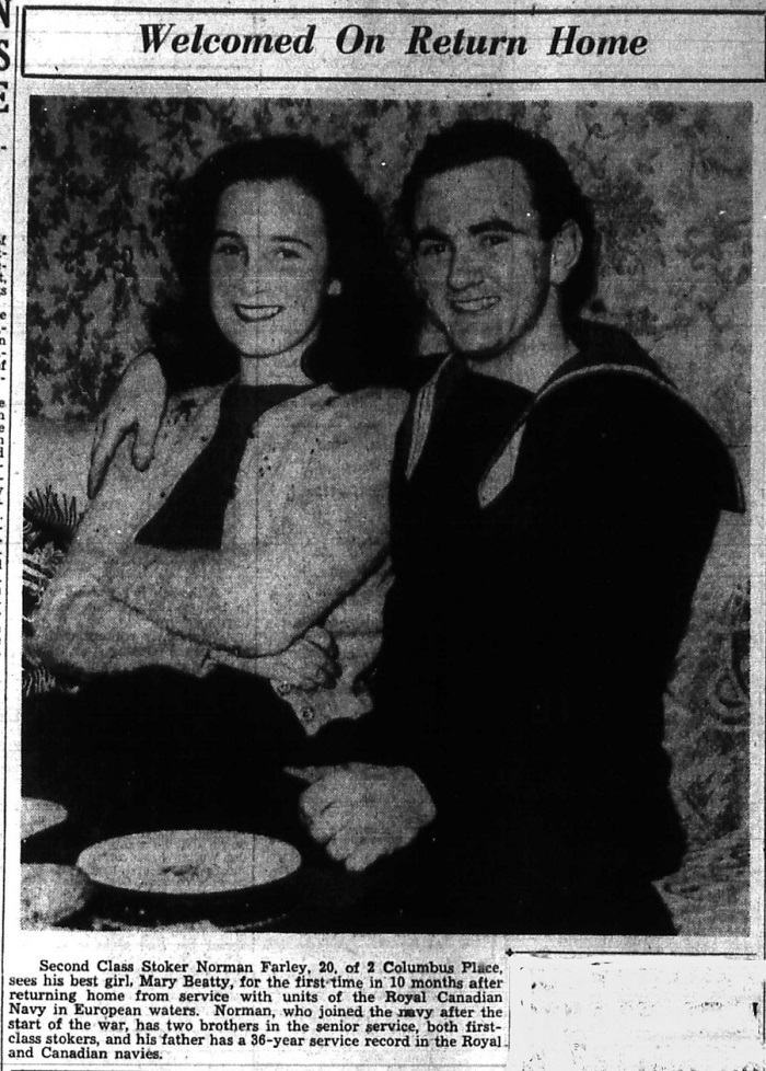 Sto 2c Norman Farley home on leave The Halifax Chronicle 04 Mar 1941 Researched by / Courtesy of George Newbury