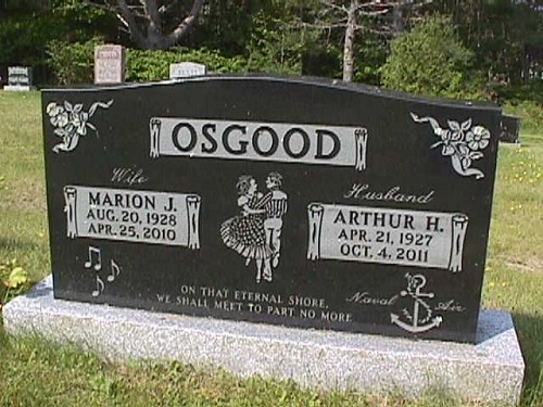 Headstone for Arthur and Marion Osgood at the Pine Hill Cemetery, Hubbards, NS Photographed by / Courtesy of George Newbury