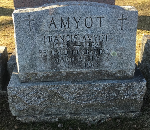 Frank Amyot's headstone at the Notre-Dame of Ottawa Cemetery, Ottawa, ON Source: Find-a-Grave