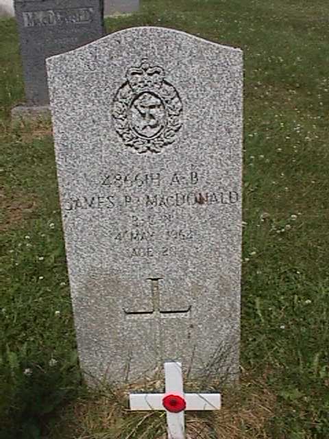 AB James MacDonald is buried in the Garden Lots Cemetery, Garden Lots, Lunenburg Co., NS