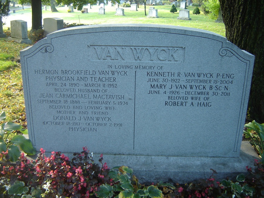 Donald Van Vyck is buried in the Mount Pleasant Cemetery, Toronto, ON.