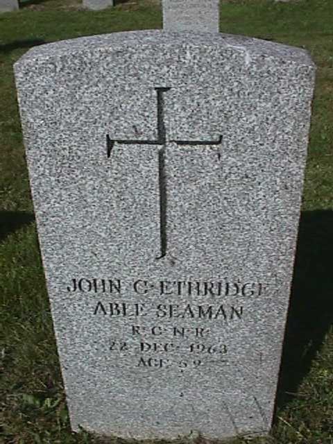 Headstone for John Ethridge at the Fort Massey Cemetery, Halifax, NS