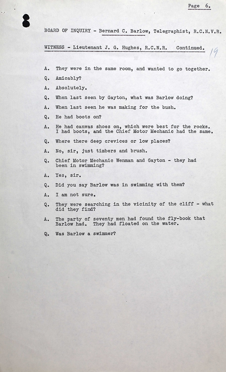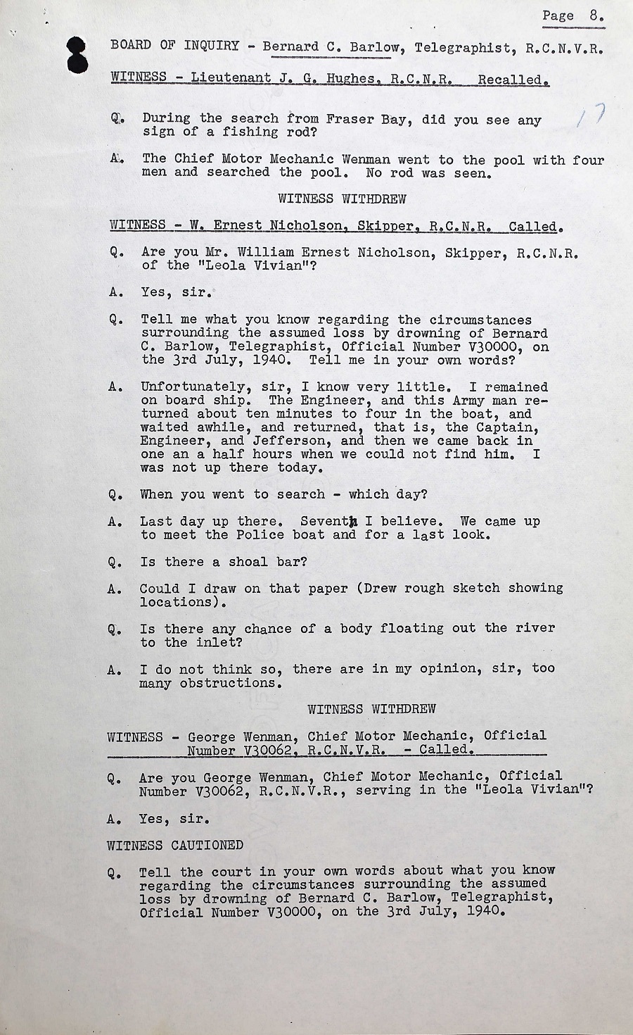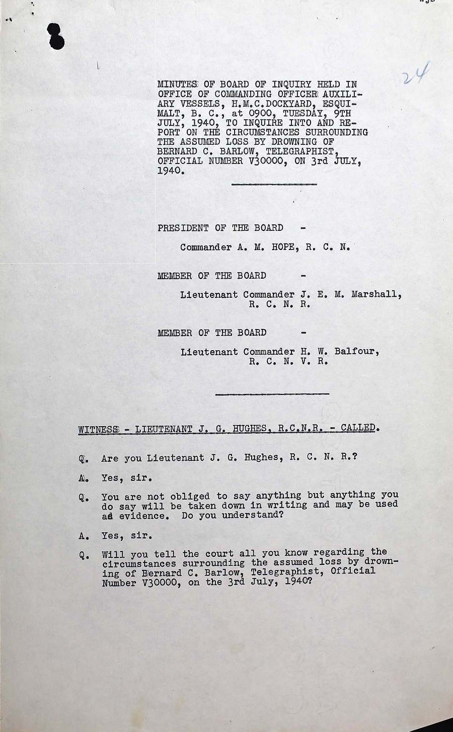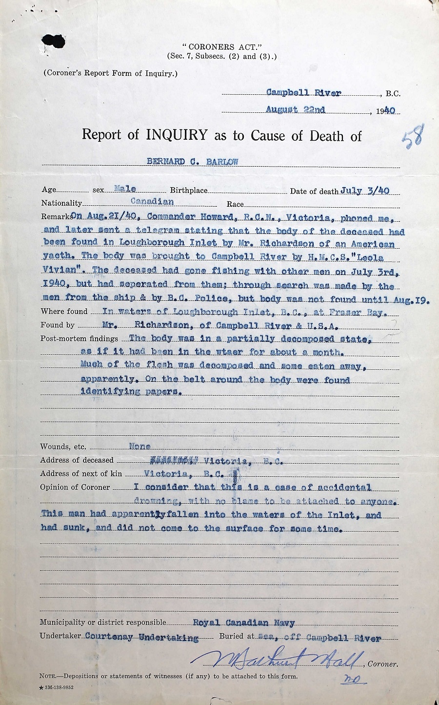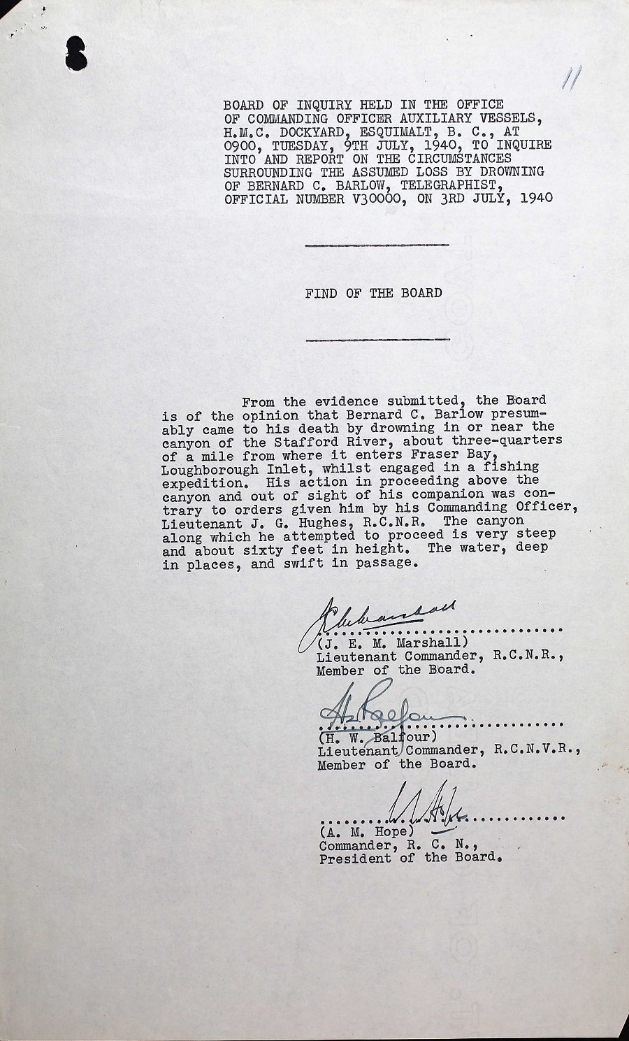 BOI REPORT INTO THE DEATH OF TEL B.C. BARLOW, V30000, RCNVR