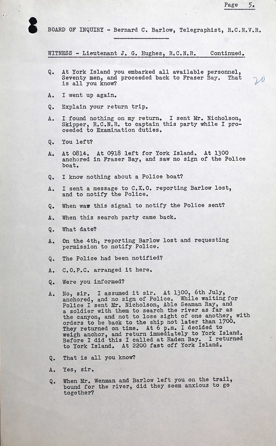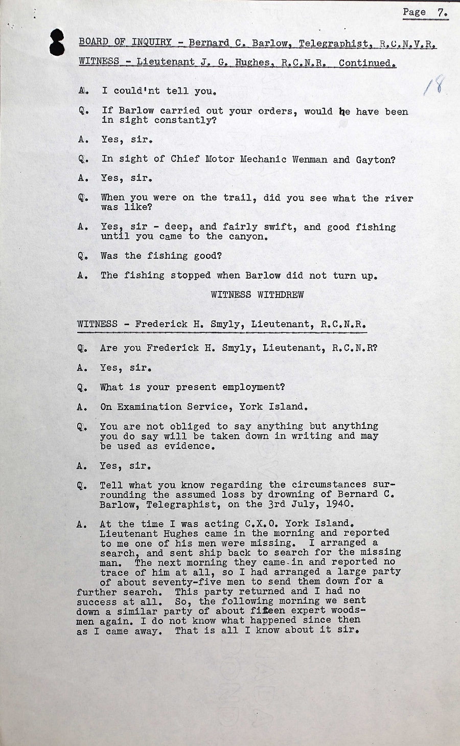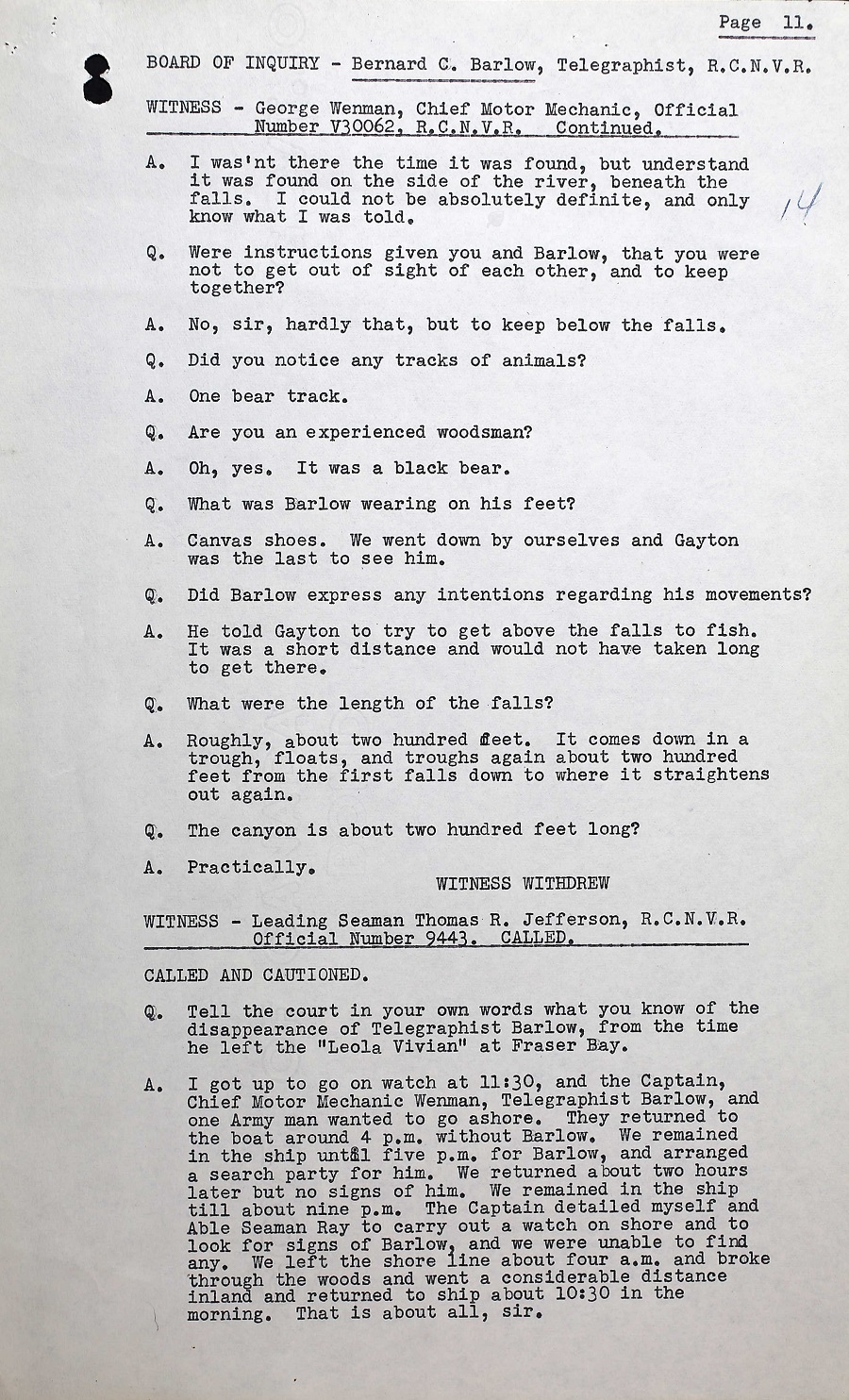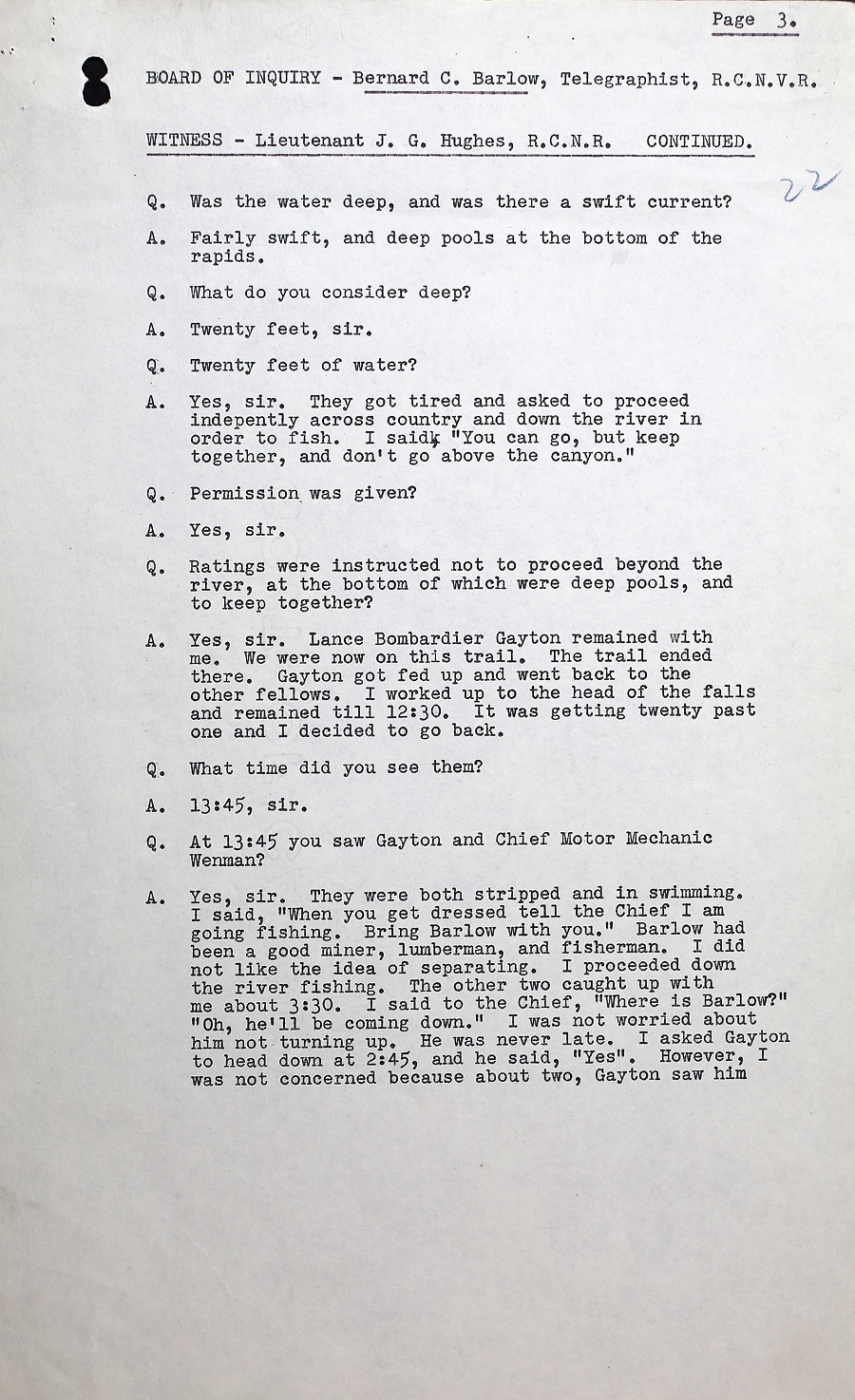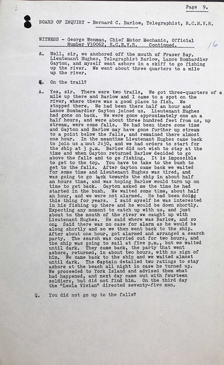 BOI REPORT INTO THE DEATH OF TEL B.C. BARLOW, V30000, RCNVR