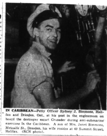Newspaper article on Sydney J. Simmons serving in HMCS Crusader Halifax Mail-Star 24 Apr 1957 Researched by / Courtesy of George Newbury