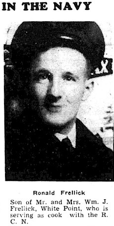 Article on Ronald Frellick serving as a cook in the RCN Liverpool Advance and Queens County Advocate - 07 Dec 1944 Researched by / Courtesy of George Newbury