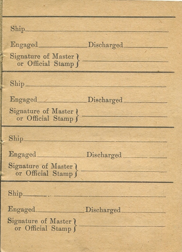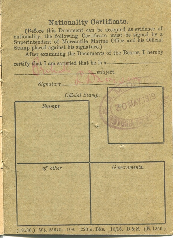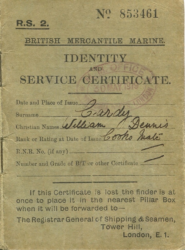 (6-11) William Cardy's Identity and Service Certificate for the British Mercantile Marine