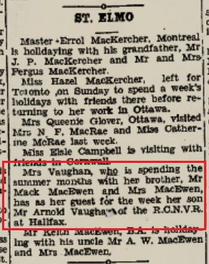 Article from The Glengarry News, Alexandria, ON., Friday, 28 Jul 1944