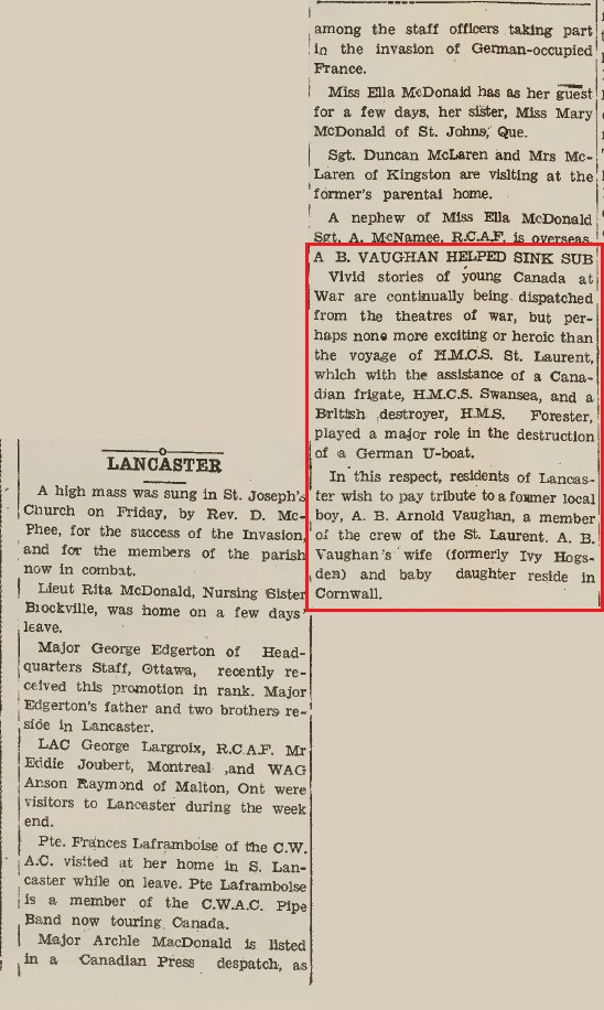 Article from The Glengarry News, Alexandria, ON., Friday, 16 Jun 1944