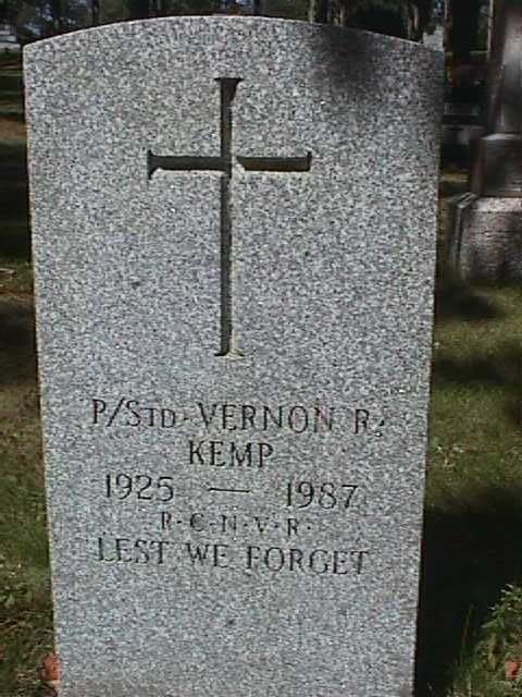 Headstone for Vernon Kemp in the Brookside Cemetery, Bridgewater, NS Courtesy of George Newbury