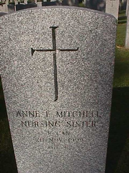 Nursing Sister Annie Mitchell is buried in the Fort Massey Cemetery, Halifax, NS.