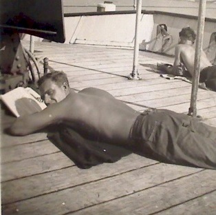 William (Bill) (Buck) Weaver relaxing on HMCS Wasaga - 1944