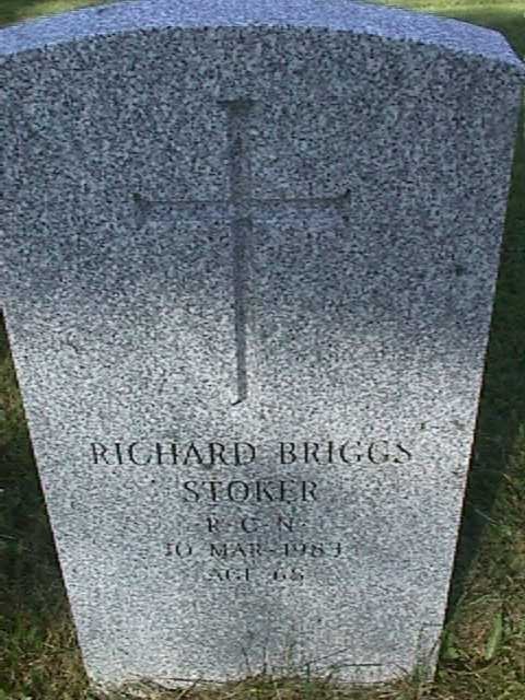 Headstone for Stoker Richard Briggs in the Fort Massey Cemetery, Halifax, NS