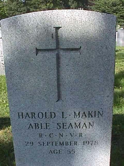 Headstone of AB Harold Makin at the Fort Massey Cemetery, Halifax, NS