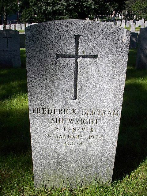 Headstone for Shipwright Frederick Bertram at the Fort Massey Cemetery, Halifax, NS