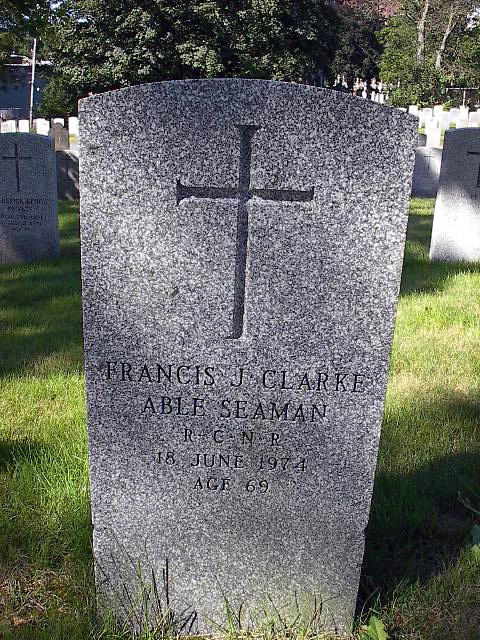 Headstone for AB Francis Clarke at the Fort Massey Cemetery, Halifax, NS
