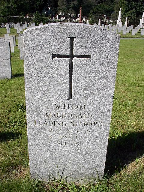 Headstone for L/Stwd William MacDonald at the Fort Massey Cemetery, Halifax, NS