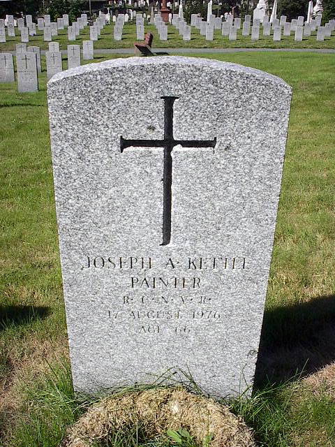 Headstone for Joseph A. Kettle at the Fort Massey Cemetery, Halifax, NS