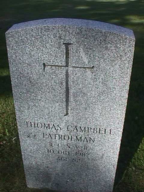 Headstone for Patrolman Thomas Campbell at the Fort Massey Cemetery, Halifax, NS