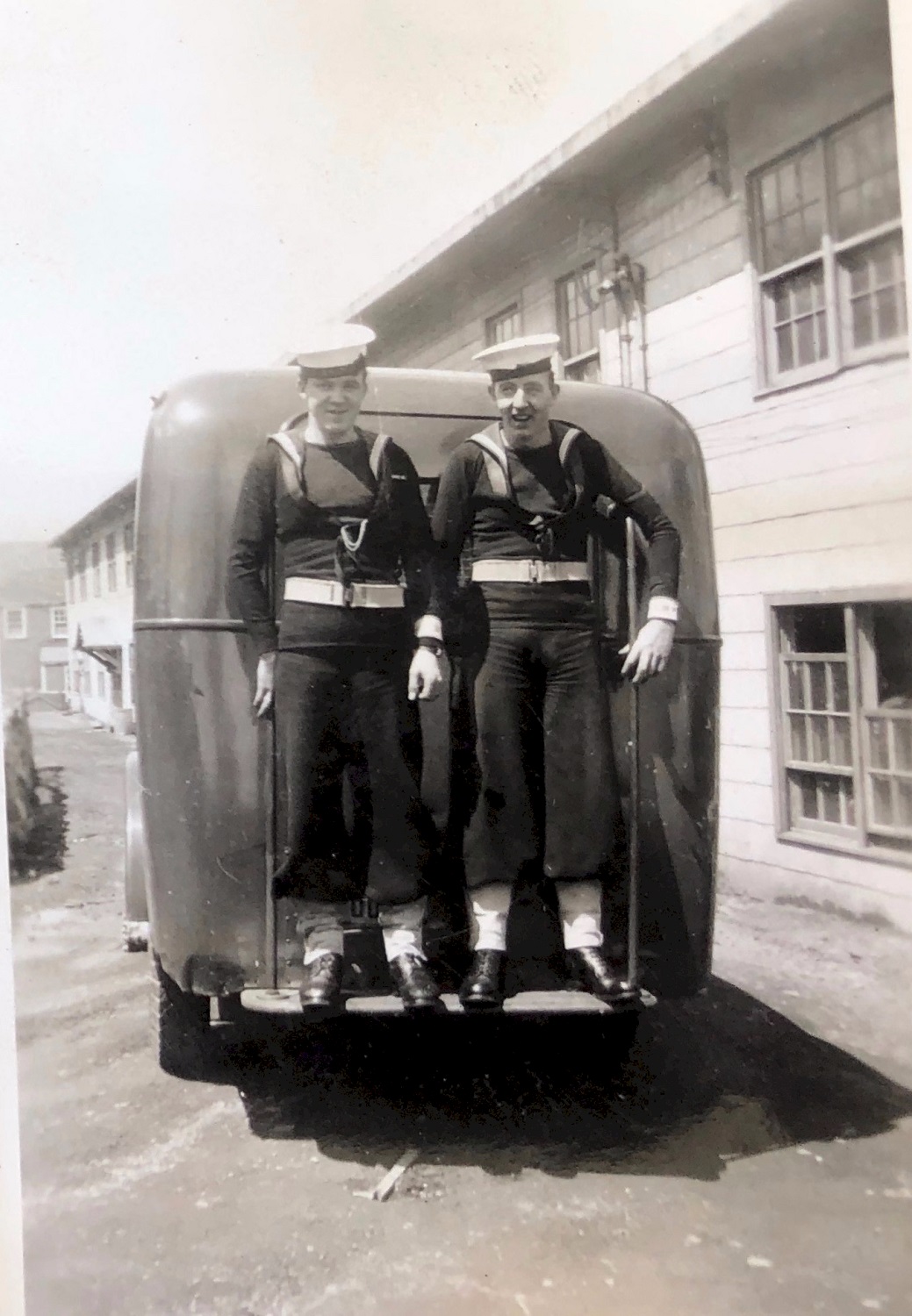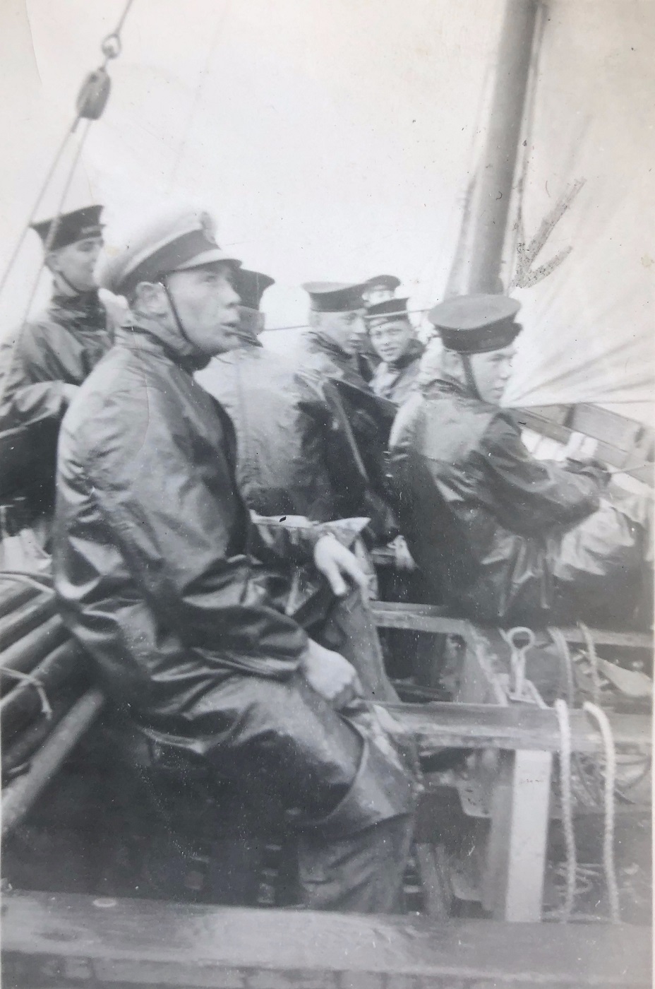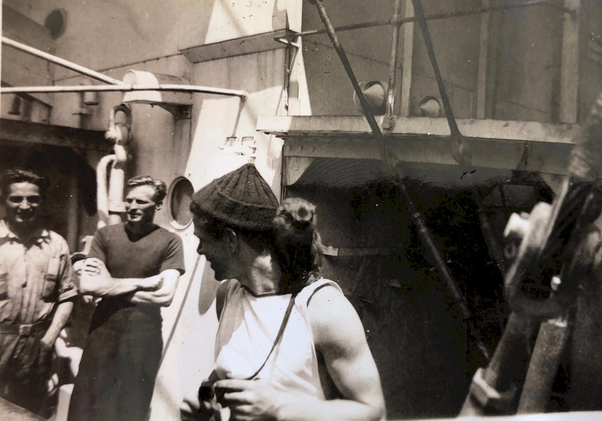 (23-24) Unidentified sailors on HMCS CHAMBLY - ship identified by gunshield art