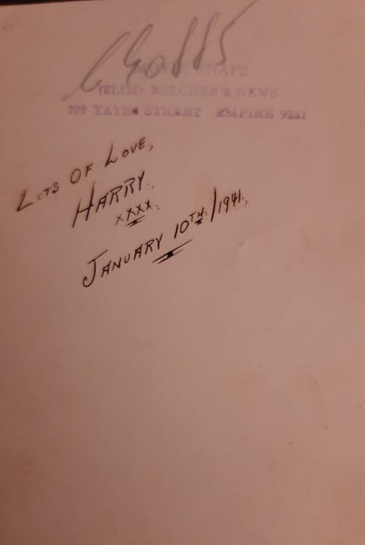 (1) Portrait of Harry Stones (2) Harry Stones in Victoria, BC (3) back of photo #2 (4) A HMCS Caraquet Christmas card