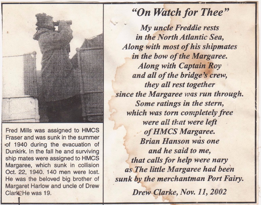 Tribute to Fred Mills and the sailors of HMCS MARGAREE by Drew Clark