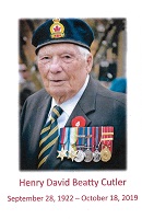 CUTLER, David Beatty - After 97 years on duty our dad cast off peacefully and slipped his lines on October 18, 2019. He dedicated his life to his family, his friends and to serving his country. He was a trusted ally and guardian angel to many. Born in Stony Beach, Saskatchewan, September 28, 1922 to Edwin and Florence Cutler, Dave grew up in various prairie towns along the CN rail line with his beloved sisters, Christine, Joyce and Phyllis. He joined the Canadian Militia at the tender age of 17, beginning his lifelong dedication to the military. He served in many branches of the service but was most proud of his 35 year career in the Navy, retiring as a Commander. He received an Oak Leaf for Gallantry during action in the Battle of the St. Lawrence, which he referred to as "the secret war." He and his "Brownie", Marguerite Stuart, met as teenagers at Biggar High School and there they began a romance that spanned seven decades. Together they travelled across Canada from coast to coast during dad's Navy career and made lifelong friendships wherever they went. Cut is survived by his three children, Dave (Barb), Jim (Sandie) and Kathy (Dale) as well as his grandchildren Robin (Debbie), John (Michelle), Scott (Nicole), Amy-Leigh (Steve), Hailey (Dustin), Brad and Robyn. He held a special place in his heart and a twinkle in his eye for his great-grandchildren Mikala, Justus, Alex, Olivia, Stuart, Kaleb and Noralynn. He is also survived by his dear baby sister, Phyllis Lange, and the expansive Cutler and Stuart clans throughout Western North America. He will forever be remembered as "Uncle Beattie." Though a curmudgeon to some, he had a soft and tender side for most. He could never pass a dog without giving a pat and a biscuit. He selflessly cared for our beloved mom, his Dolly, on a daily basis and became a fixture at the Gorge Road Hospital, Mount St. Mary's and finally at Broadmead Lodge where he spent the last 18 months of his life. For these lessons, and many others, we are eternally thankful. We gratefully acknowledge the exceptional care of the angels at both Alexander Mackie and Broadmead Lodge, who helped dad navigate his final years. We also thank the Royal Canadian Legion for their support and friendship. We invite you to celebrate with us on Saturday, November 9 from 2 - 4:30 p.m. First Memorial, 4725 Falaise Drive. In lieu of flowers, please consider a donation to the Royal Canadian Legion, Prince Edward Branch #91 (Langford) or the Lodge at Broadmead, in honour of their service to so many of our veterans. At the going down of the sun and in the morning We will remember him. (Victoria Times Colonist 01 Nov 2019)