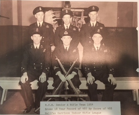 (JA06) RCN Senior A Rifle Team 1954 - Broke 18 year record of 487 by score of 488. Halifax Garrison Indoor Rifle League. SLt Abraham, front, centre (JA07) LCDR John E Abraham, honor guard officer for the Governor General