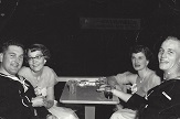 (1) Seaman Gordon Stinson - 1950 (2) PO2 Gordon Stinson at HMCS Cornwallis - 1960 (3) Shipmates ashore in Rome - 1964 (4) L-R: Kenneth and Ruth Kelbough, Margaret and Gordon Stinson - 1956