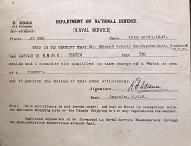 Ships served in: (as a rating) WINNIPEG DIVISION RCNVR - Enlisted in the RCNVR 05 Oct 1927 as an OS (The Nauticapedia). * Note: On 30 Oct 1928, while at HMCS Naden, he transferred to the RCN as an OS. HMCS VANCOUVER - Served in Vancouver 10 Sep 1929 - 30 Sep 1929 as a OS, RCN HMCS VANCOUVER - Served in Vancouver 28 Dec 1929 - 02 Jul 1930 as an OS & AB, RCN. Rated AB 30 Apr 1930 HMS NELSON - Served in Nelson 23 Jul 1930 - 05 Jan 1931 as an AB, RCN HMS VICTORY (for HMCS SKEENA) - Served in Skeena 25 Jun 1931 - 25 Nov 1931 as an AB, RCN HMCS SKEENA - Served in Skeena 15 Apr 1932 - 31 Dec 1932 as an AB & LS, RCN. Rated LS 01 Dec 1932. HMCS VANCOUVER - Served in Vancouver 25 Jul 1933 - 31 Dec 1933 as a LS, RCN HMCS SKEENA - Served in Skeena 01 Jun 1934 - 09 Jan 1936 as a LS, RCN HMCS ST LAURENT - Served in St Laurent 02 May 1938 - 24 May 1939 as a PO, RCN HMCS ST LAURENT - Served in St Laurent 30 May 1939 - 07 Jul 1939 as a PO, RCN HMCS PRINCE ROBERT - Served in Prince Robert 22 Oct 1941 - 25 Feb 1943 as a CPO, RCN HMCS GIVENCHY - Served in Givenchy 26 Feb 1943 - 28 Feb 1943 as a CPO, RCN HMS PUNCHER - Served in Puncher 20 Jul 1944 - 31 Jul 1945 as a CPO, RCN. CFR 01 Jul 1945