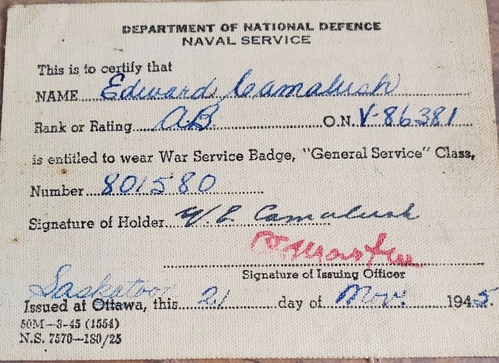 HMCS ELK - Served in Elk 08 - 15 Sep 1944 while in training at HMCS CORNWALLIS