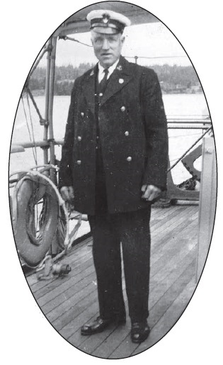Chief Petty Officer James Vinnicombe, HMCS GALIANO's boatswain, was among those who perished when the ship sank in an October 1918 storm. A handwritten caption identifies Vinicombe as "the bos'un". As boatswain (a word spelled in a wide variety of ways including "bosun"), he was responsible for GALIANO's rigging, cables, anchors, and deck crew. The 53-year-old Vinicombe, likely photographed aboard the GALIANO, was one of 40 lost when the ship sank off the British Columbia coast. Like the majority of the crew, he was a resident of British Columbia, although he had been born in London, England.