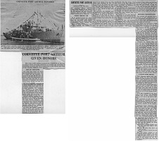 (1) Newspaper article on the presentation of comforts and gifts to the crew of HMCS Port Arthur (2) Photo of the presentation with ship's CO and dignitaries