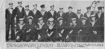 (4) Port Arthur crew members - L-R: Front - J.R. Elderbroom, C.J. Barrett, C.F. Brooks, J.J. Reeves, A.J. Gallo, V.T. Robson, E.O. Williams, M.Craing. Back - S. Wilson, A. Crilly, T. Brooks, H. Winslow, L. Manuel, J. Skinner, N. Longworth, H. Quance, E. Sorel, K. Robertson, R. Batchelor