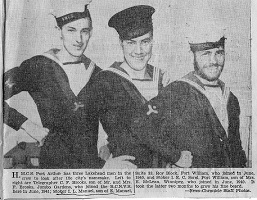(3) Three Lakehead men in Port Arthur crew - L-R: Telegrapher C.F. Brooks, Stoker I.L. Manuel and, Stoker I.E.C. Sorel