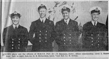 (5) Officers of Port Arthur: L-R: SLt G.S. Richardson, Lt Simmons, DSC, CO, LT L. Hoare and SLt R. Cowan